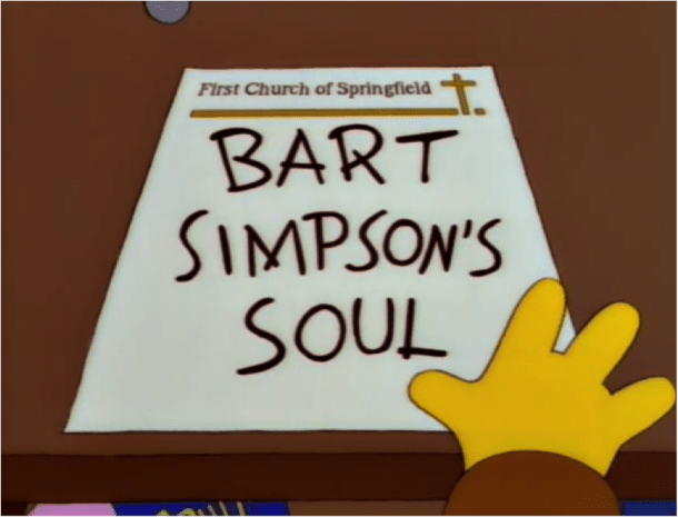 If you’re familiar with The Simpsons, you’ll know the classic episode “Bart Sells His Soul”, where Bart sells his soul to Milhouse for $5, claiming he doesn’t believe in it. Throughout the episode, however, he starts to feel the ramifications of selling his soul after strange events happen to him. He feels like a part of himself is lost and scrambles to get the piece of paper on which he signed his soul away back. On getting it back, he eats the paper, therefore reclaiming his ‘soul’.